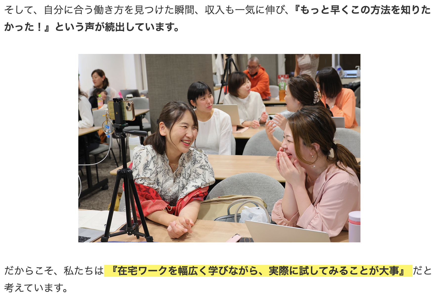 特に「在宅セミナー講師」という新しい働き方を確立した実績は、「本当に学べる場所かもしれない」と思えるきっかけになりました。
